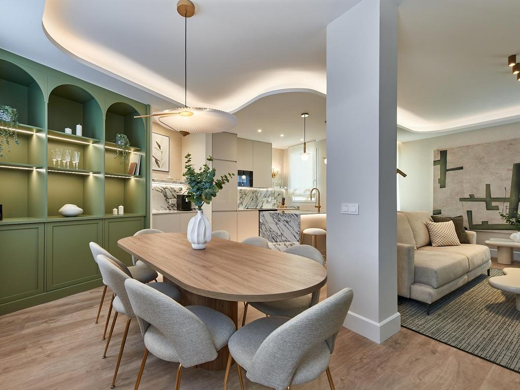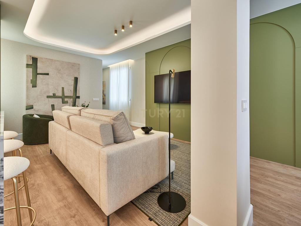 Ubicada en una finca clásica de 1930 con ascensor y servicio de portería, la propiedad ha sido completamente reformada bajo un concepto contemporáneo que prioriza la luminosidad, la funcionalidad y el equilibrio estético. La altura de la planta y su orientación interior garantizan tranquilidad y buena entrada de luz natural.